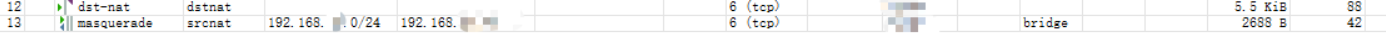 /ip firewall nat add chain=srcnat src-address=192.168.XX.0/24 (internal_network_range) dst-address=[internal_IP] protocol=tcp dst-port=[internal_port] out-interface=bridge action=masquerade